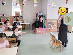 その大根を使って給食の先生に食育指導をしてもらいました。今月の旬の野菜はほうれん草と大根!鉄分とビタミンCが豊富なほうれん草は体の中に元気の源を運ぶ役割をしたり、風邪を引きにくくしたり肌をキレイにする働きがあることを知りました。