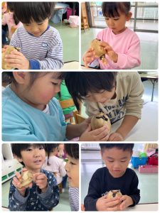 図書館では本を読ませてもらえて、沢山の本の中からお気に入りを探すのに夢中になっていましたよ!すえひろこども園のお友だちとすっかり意気投合して手を繋いで探す姿もあり入学しても沢山友だちを作るんだろうなとほっこりしましたよ!