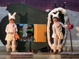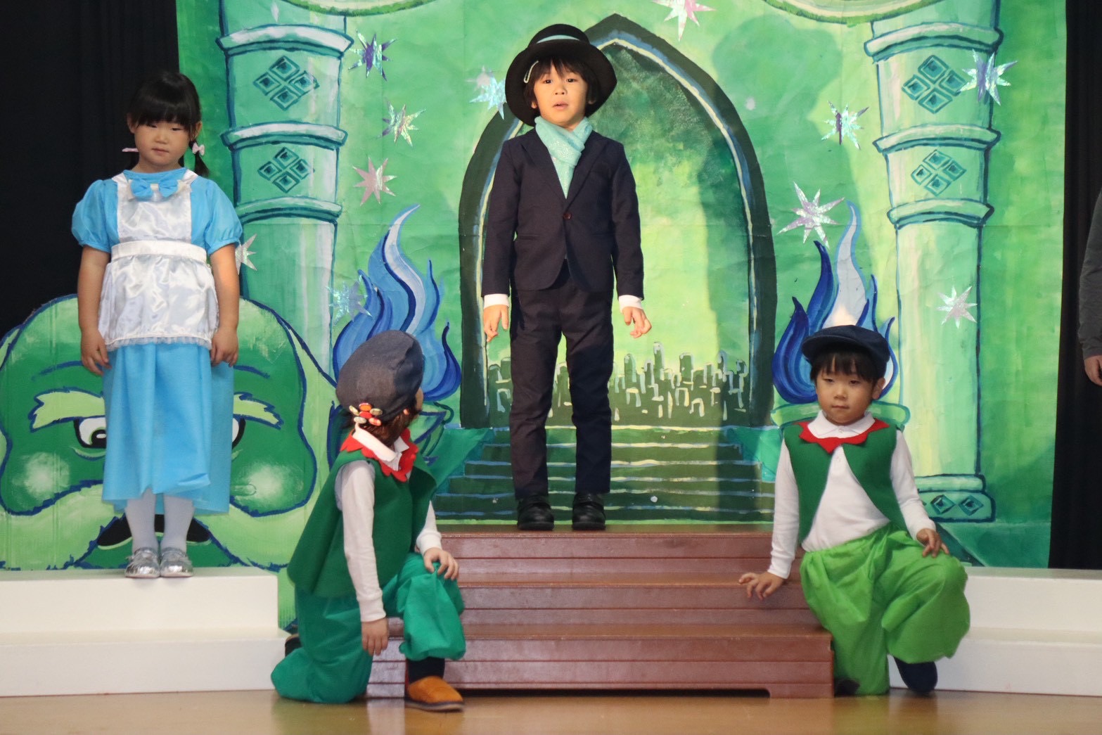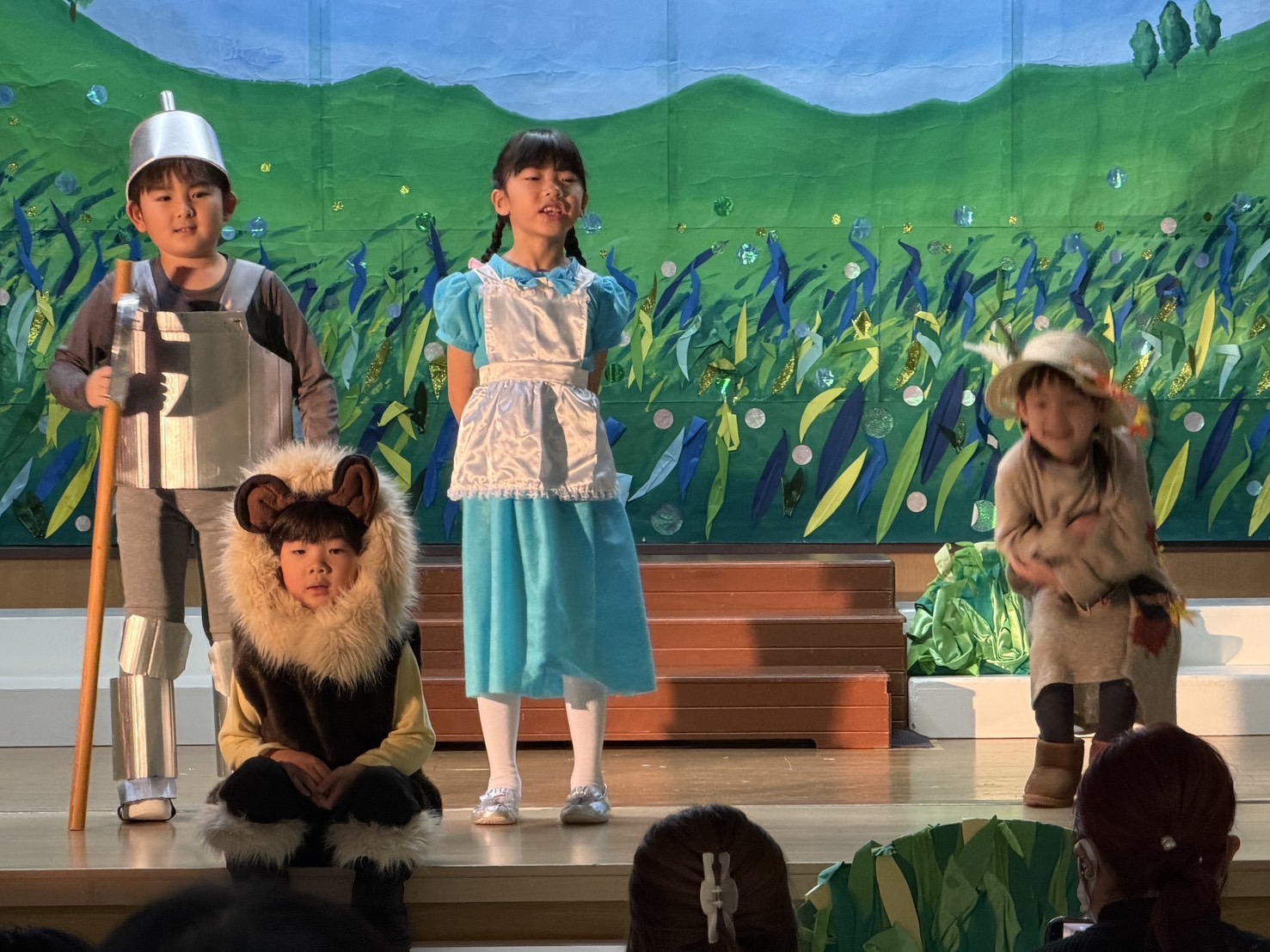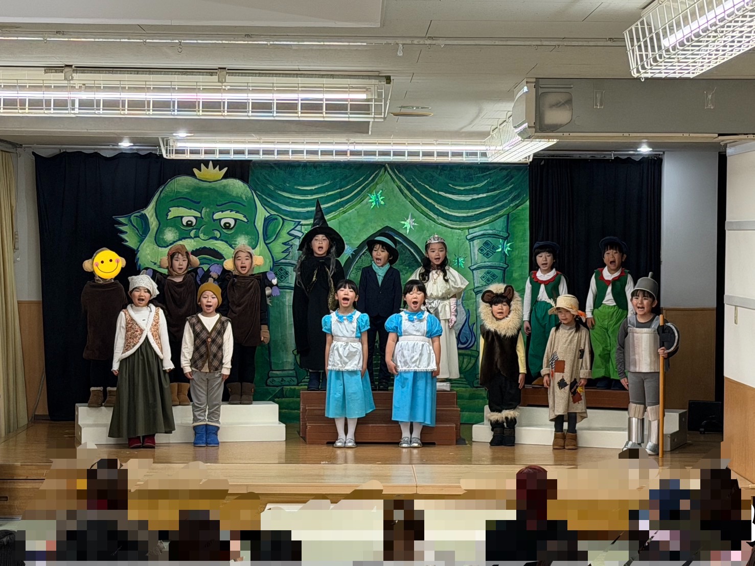 オズの魔法使いの絵本を何度も何度も見て興味を持っていった子ども達。役を決め、初めはセリフを覚える難しさや緊張で小さな声だったけれど、いつの間にか役に入り込み演じることの楽しさを知りました。劇を通して友だちと励まし合うこと、助け合うこと、仲間を信じること、自分にはすごい力があることを学び、今までの練習の成果を出し、最高の笑顔で舞台に立てた15人のおともだちに大きな拍手を送ります!!