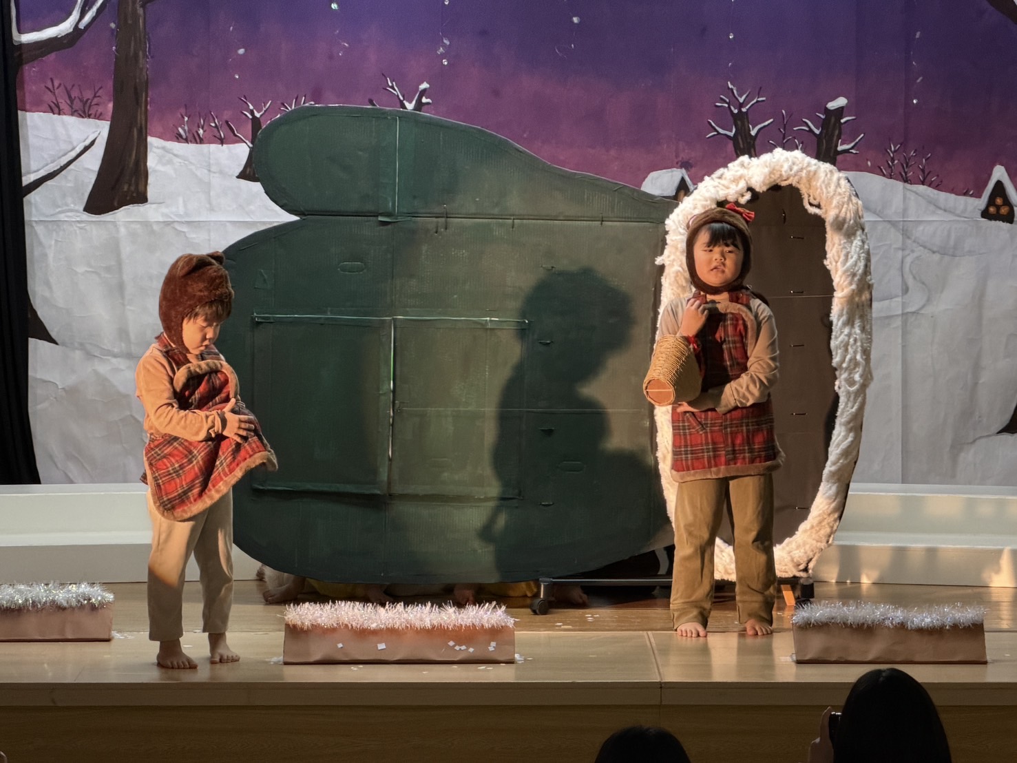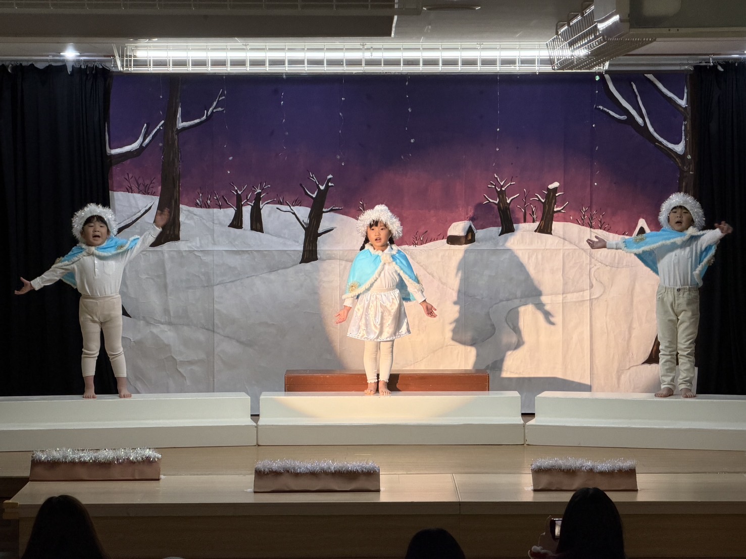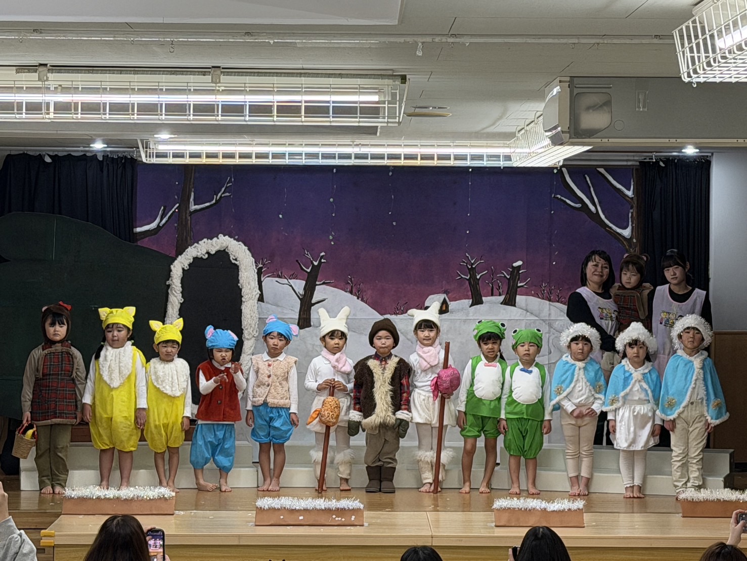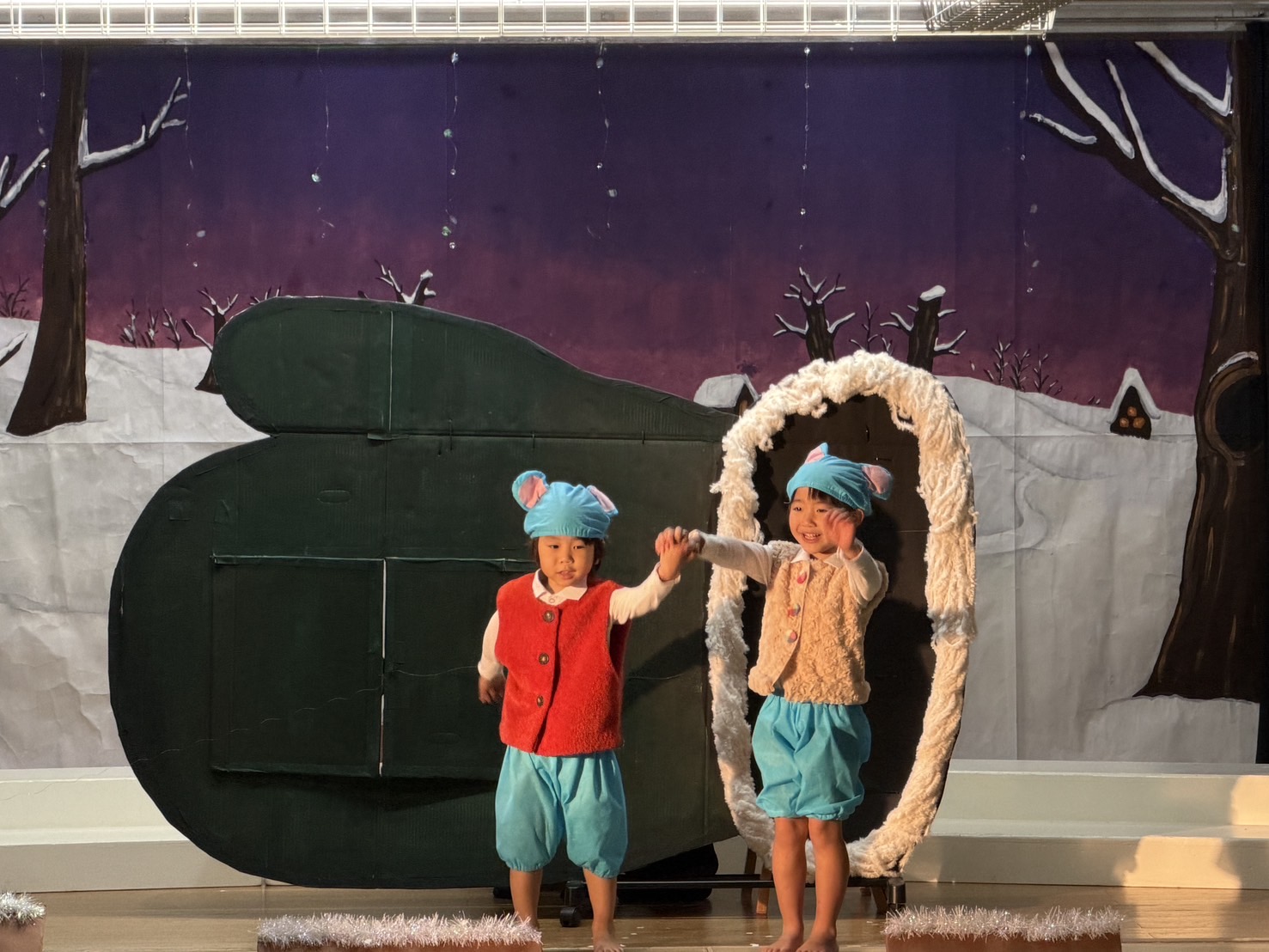 オズの魔法使いの絵本を何度も何度も見て興味を持っていった子ども達。役を決め、初めはセリフを覚える難しさや緊張で小さな声だったけれど、いつの間にか役に入り込み演じることの楽しさを知りました。劇を通して友だちと励まし合うこと、助け合うこと、仲間を信じること、自分にはすごい力があることを学び、今までの練習の成果を出し、最高の笑顔で舞台に立てた15人のおともだちに大きな拍手を送ります!!