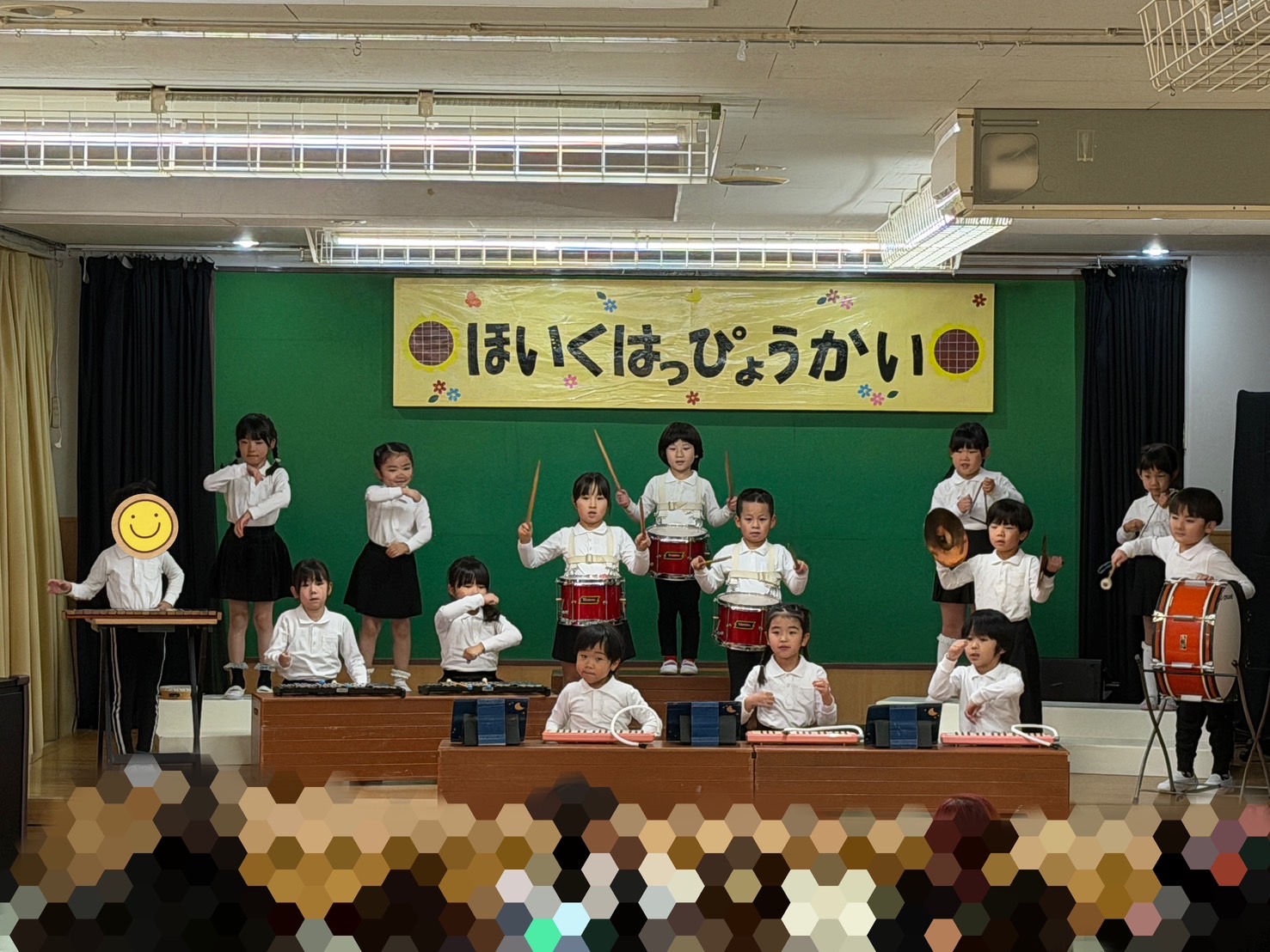 昨日までは『楽しみ』の方が大きかったけど今日は『緊張する』と口にする子どもたち。でも、開幕すると表情が変わり大好きなお家の方の前で「パプリカ」を堂々と演奏したり踊ったりして15人の幸せという音色のタネをまくことができました。「僕のこと」では優しく歌う中感動して涙する子…その姿に気付きそっと背中をさする子…そんな仲間を思いやる絆が垣間見えた発表となりました。子どもたちにとって忘れられない大切な曲となりました。