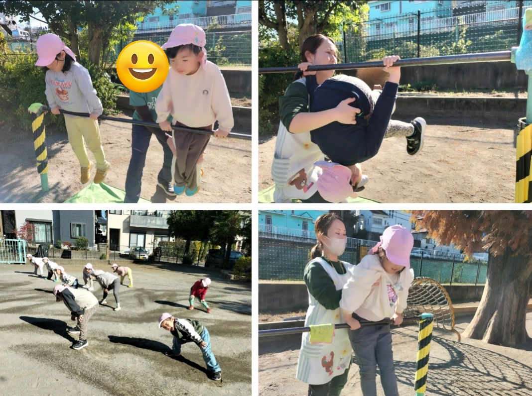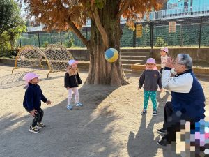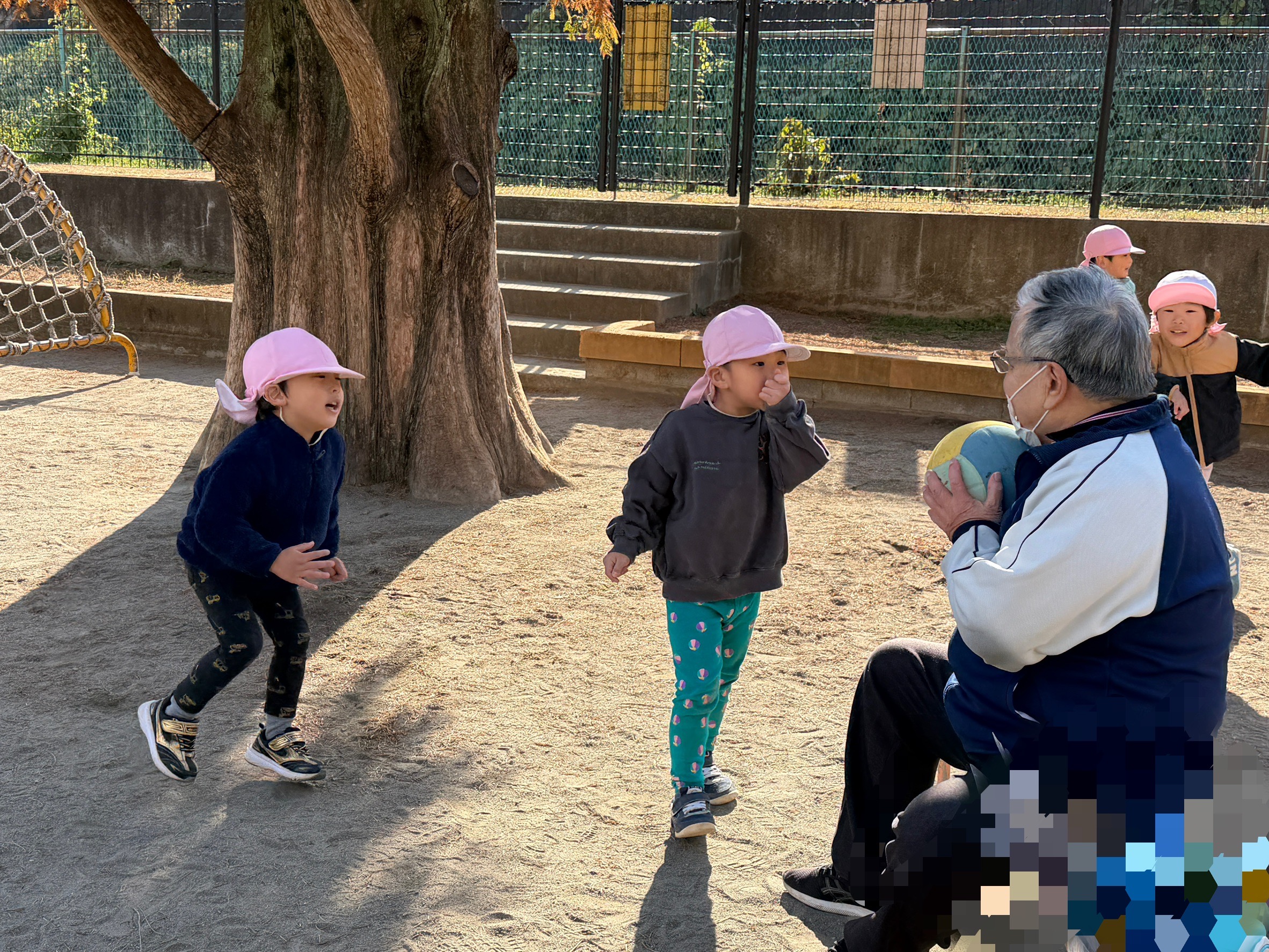 園長先生とボール投げや、お砂で作ったアイスをごちそうしたり、園長先生が恐竜になってたくさん遊びました😊