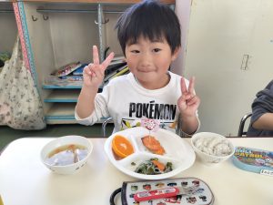 「早く食べたいね。」との言葉通り、給食に出てくると美味しい!!と味わっていました。今日も完食でした。次回の野菜は何かな〜と今から楽しみにする子どもたちでした。