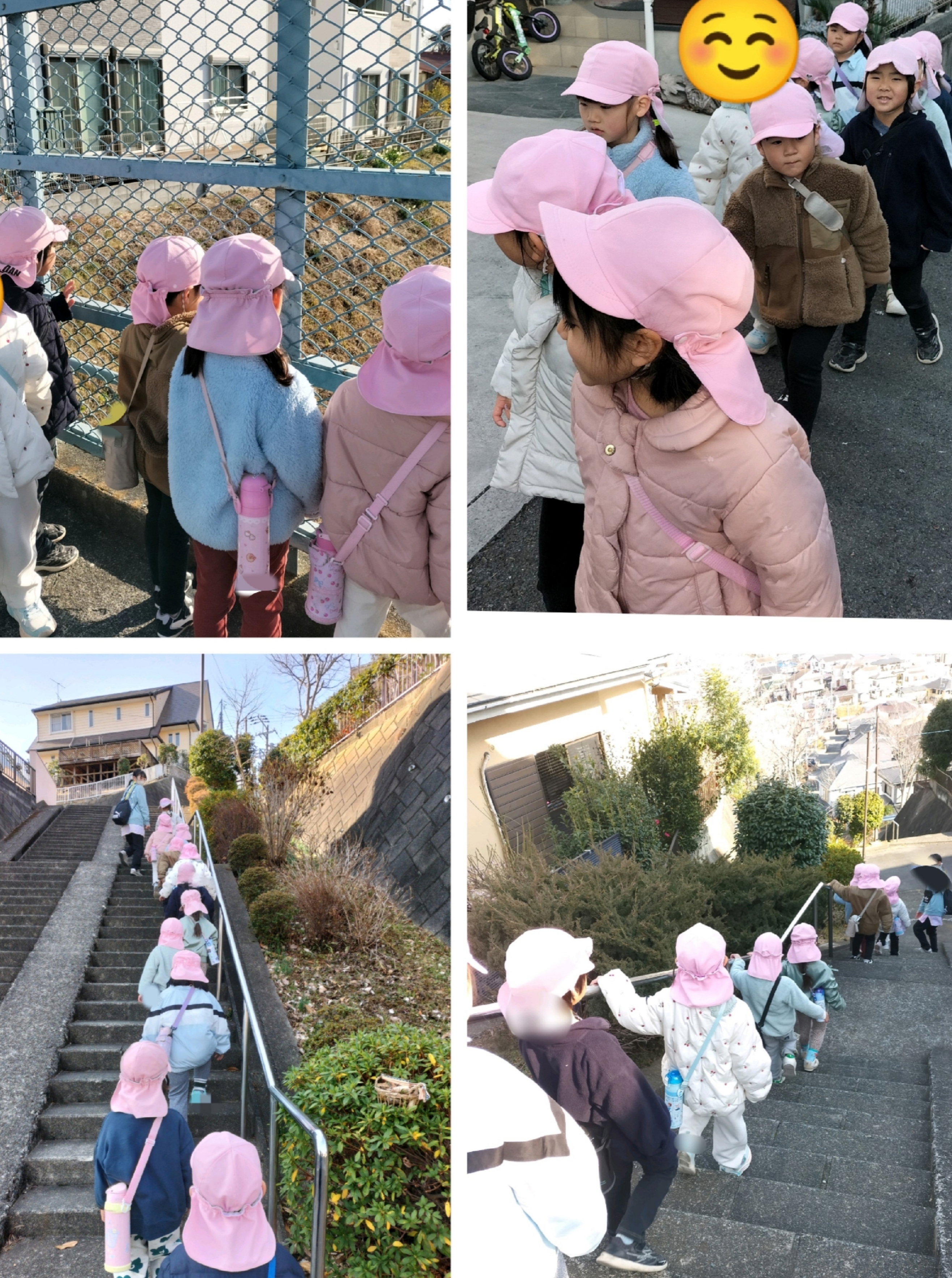 久々の散歩・寒い日ではありましたが、のぼり坂をぐんぐん登り、神社の境内に続く鳥居の前に到着!一礼してから階段を登っていきました。