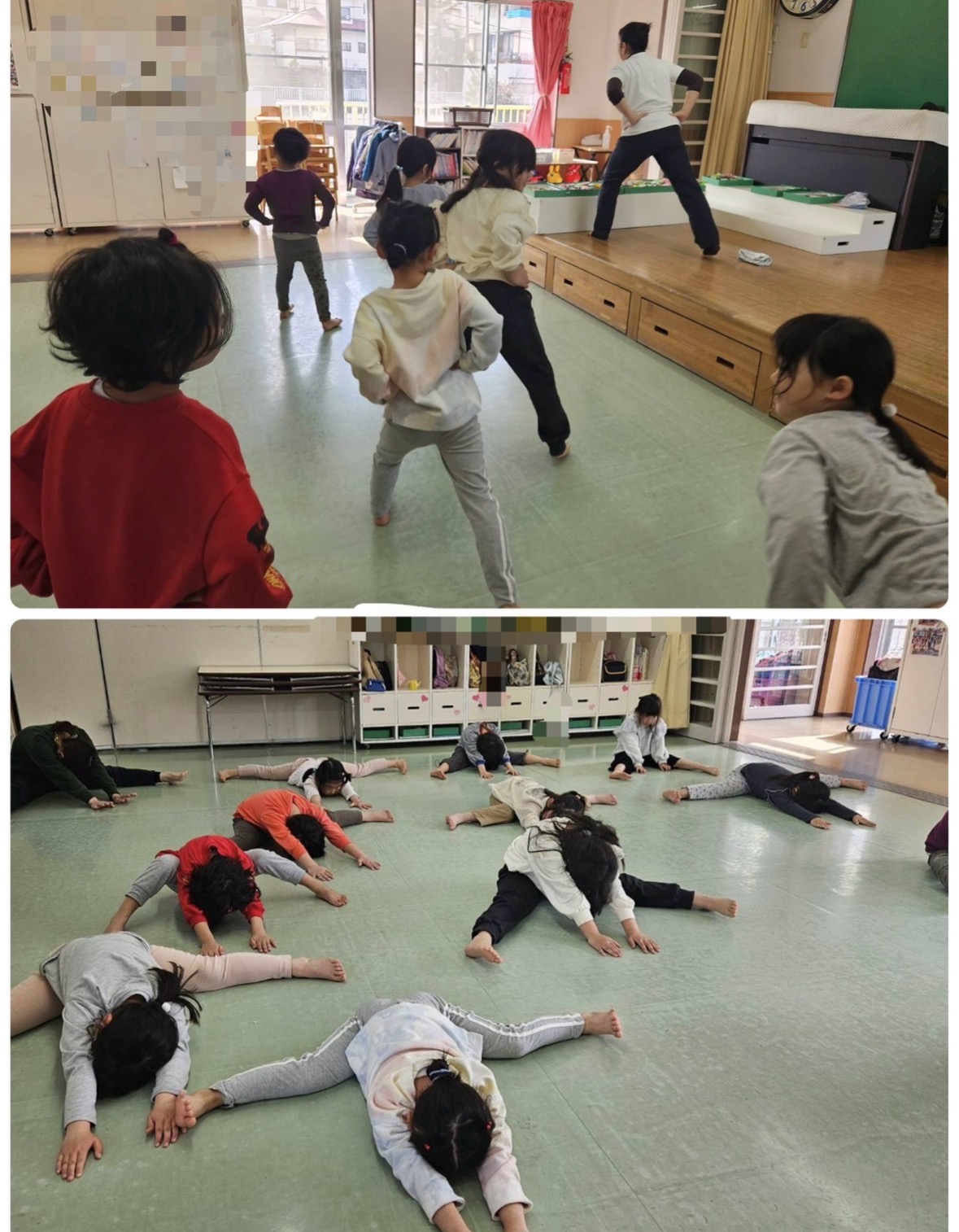 ぱんだ組の頃から様々な運動あそびを教えていただいた体育指導も、もうすぐつきグループは修了を迎える為、最後の体育指導の日でした。