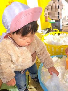 次はほしグループ、つきグループのみんなの番!うさぎ組、ぱんだ組のためにも「鬼を退治するぞ!」とやる気満々な子どもたち💪「鬼は外、福は内!」と鬼をやっつけることができました✨