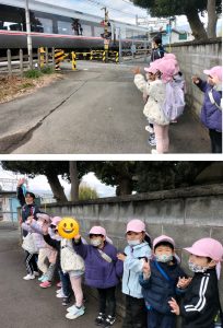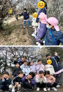 1週間前から幼児クラスに弘法山から保育園に鬼が近づいてくる写真を掲示し、鬼が来るのを楽しみにする子、「怖い!」とドキドキな子もいました。