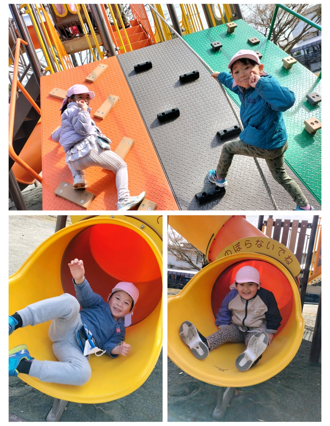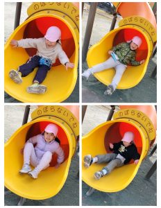 公園ではクライミングや、くるくるのすべり台、広場での追いかけっこを楽しんできました!