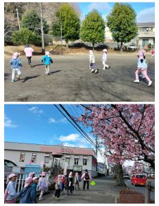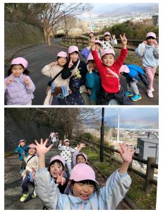 細道では就学に向けて一列になって登校班のように歩いてみました!途中で虹を発見して大喜び🌈
