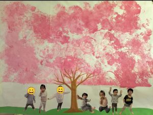 ひよこ組のお部屋に満開のさくらの木ができました🌸